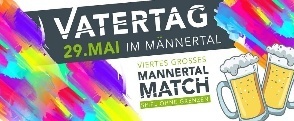 Der MV Üttfeld 1958 e.V. lädt herzlich ein zum Vatertag im Ma(ä)nnertal in Binscheid • großes Mannertal Match für Gruppen von 4 - 6 Personen• Riesen-Hüpfburg • DJ Keymass• Matchtime - lustige Wettkämpfe ab 14.00 Uhr• Kaffee & Kuchen, Mittagsmenü