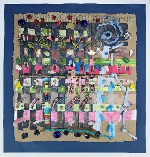 Die luxemburgische Künstlerin Josée Kratochwil war schon als Kind vom Flechten fasziniert. „FlechtWerk“ nennt sie deshalb die Ausstellung. Im Gegensatz zu ihrer kindlichen Begeisterung für strenge Flechtmuster, erlaubt sie sich heute jegliche Freiheit der Form und des Materials. Ihre Collagen oder Flechtwerke stellen nichts dar, sie sind ein intuitiv entstandenes Spiel von Formen und Farben, die stets auch eine räumliche Dimension haben. Betrachterinnen und Betrachter sind bei Deutung und Interpretation ganz auf die eigene Phantasie verwiesen.