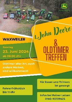 1. John Deere und Oldtimer Treffen in Waxweiler mit Oldtimern aller Art, auch andere Marken sind willkommen!