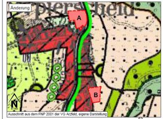 Da gemäß des Entwicklungsgebotes Bebauungspläne aus dem Flächennutzungsplan zu entwickeln sind (§ 8 Abs. 2 S.1 BauGB) ist zur Umsetzung der Planung eine Änderung des Flächennutzungsplans der Verbandsgemeinde Arzfeld aus dem Jahr 2001 erforderlich.