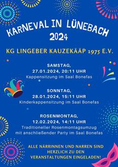 Die KG Lingeber Kauzekääp lädt herzlich ein zur Kinderkappensitzung im Saal Bonefas. Die kleinen und großen Zuschauer dürfen sich auf ein lustiges und abwechslungsreiches Programm freuen.