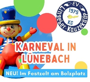 Gala-Sitzung Lünebach SAMSTAG, 31.01.2026, 20:11 UHR | SAAL BONEFAS | LÜNEBACH Die KG Lingeber Kauzekääp lädt herzlich ein zur Gala-Sitzung im Saal Bonefas (Kartenvorverkauf im Gasthaus Lingebech)