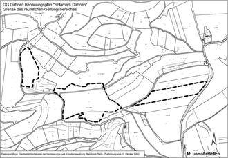 Der Ortsgemeinderat Dahnen hat in seiner Sitzung am 30. November 2023 die Aufstellung des Bebauungsplanes „Solarpark Dahnen“ gemäß § 2 BauGB einschließlich eines integrierten Umweltberichts beschlossen.