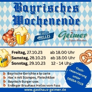 Das Eifeler Wirtshaus Geimer in Plütscheid lädt zum Kulinarischen Oktoberfest ein.
