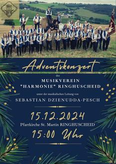 Adventskonzert des MV "Harmonie" Ringhuscheid unter der musikalischen Leitung von Sebastian Dzienudda-Pesch in der Pfarrkirche St. Martin Ringhuscheid.Im Anschluss an das Konzert lädt der Musikverein zu gemütlichen Stunden bei Glühwein, Kakao und Plätzchen in der alten Schule in Ringhuscheid.