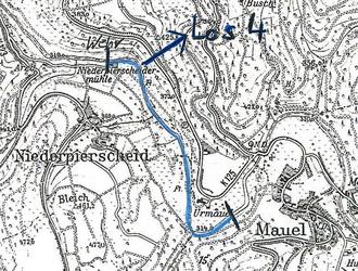 Fischereistrecke Prüm, Los 4 - beginnend am bisherigen Ende der Eigenfischereistrecke im Bereich der Gemarkung Mauel / Urmauel bis zur Niederpiescheider Mühle (Wehr). - siehe Karte -