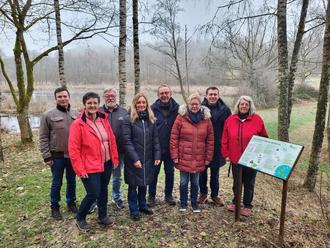 Bild: Tourist-Information Islek v.l.n.r. Ansgar Dondelinger (ZV Naturpark Südeifel), Andrea Gierenz (Ortsgemeinderat Irrhausen), Walter Thibol (1. Beigeordneter Ortsgemeinde Irrhausen), Daniela Torgau (Geschäftsführerin ZV Naturpark Südeifel), Edgar Krings (Ortsbürgermeister Irrhausen), Regina Wilhelm (Tourist-Information Islek), Johannes Kuhl (Bürgermeister VG Arzfeld/Verbandsvorsteher Zweckverband Erholungsgebiet Irsental), Rosi Moser