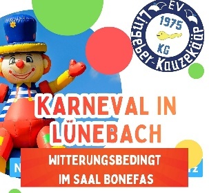 MONTAG, 16.02.2026, 14:11 UHR | STRASSENUMZUG, ANSCHLIESSEND SAAL BONEFAS | LÜNEBACHAn diesem Rosenmontag veranstaltet die KG Lingeber Kauzekääp für alle Jecken der Region den Straßenumzug mit anschließender Party im Saal Bonefas.Die Karnevalsgesellschaft freut sich über zahlreiche Besucher.