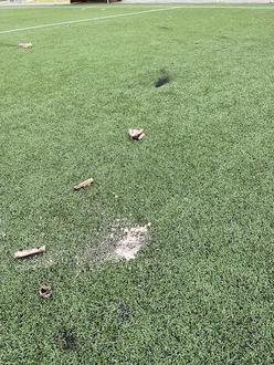 In der Silvesternacht haben Unbekannte durch das Abbrennen von Feuerwerkskörpern auf dem Kunstrasenplatz in Gillenfeld erheblichen Sachschaden durch mehrere Brandstellen angerichtet.