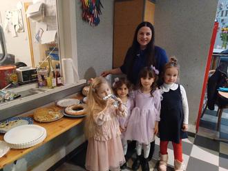 Viele der uns mittlerweile ans Herz gewachsenen meist noch jungen Ukrainerinnen und Ukrainer schienen vor diesem 24. Februar wie gelähmt. Deshalb war es uns wichtig, sie an diesem Tag nicht alleine zu lassen. So luden Katja Höger, die Lehrerin der Integrationskurse und Rita Schmaus in die Räumlichkeiten des Café Asyl ein - zum gemeinsamen Austausch, zum Feiern des Geburtstags von Oxana mit ukrainischen Spezialitäten und auch zum gemeinsamen Singen der heimatlichen Lieder mit Irina. Die Kleinen spielten und tobten ausgelassen - das größte Geschenk an diesem Abend waren diese unbeschwerten Momente!