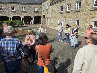 Am 13.04.2024 fuhren wir mit einer Abordnung der Gillenfelder Ortsgemeinderatsmitglieder zu unserer Partnergemeinde Bütgenbach in Ostbelgien. Nach der etwa einstündigen Busfahrt und bei schönstem Wetter empfingen uns gegen 15 Uhr die Bütgenbacher Gemeinderatsmitglieder Frau Martha Limburg-Collas und Herr Hermann-Josef Pauels. Nach einem kurzen Stopp an der Tourist-Information luden sie uns zu einem kleinen Rundgang im sehr schönen Ortskern ein um uns ein paar historische Gebäude, wie z. B. die alte Molkerei und den ehemaligen Gutshof, ein wunderschönes denkmalgeschütztes Gebäude, welches nun als Seniorenheim Bütgenbacher Hof, genutzt wird, zu zeigen.