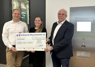 Am 11. April 2023 durfte Friedhelm Marder, Stadtbürgermeister Daun, sowie Natalie Ivanov, Mitarbeiterin der Verbandsgemeindeverwaltung Daun, den Hauptsitz der Firma BD Rowa in Kelberg besuchen. Der Grund des Besuchs: Eine Spendenübergabe in Höhe von 5.000 € an die Stiftung Gertrud Hontheim, die sich der Förderung geistig und körperlich behinderter Kinder, Jugendlicher und Erwachsener in Daun und der Verbandsgemeinde Daun verschrieben hat.
