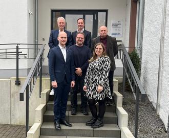 v. l. n. r.: 1. Reihe: Bürgermeister und Verbandsvorsteher Thomas Scheppe, Manuel Horten, Personalleiterin Kim Kalfels; 2. Reihe: Personalratsvorsitzender der Verbandsgemeindeverwaltung Dieter Klas, Büroleiter Thorsten Loosen, Fachbereichsleiter Klaus-Willi Wirtz