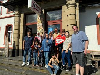 Nicole Brand mit Mitgliedern des Café Asyl Daun