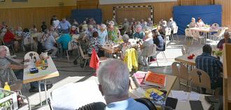 Auch in diesem Jahr kamen wieder zahlreiche Seniorinnen und Senioren zum Grillnachmittag in Mehrzweckhalle der Schule am Pulvermaar in Gillenfeld zusammen.