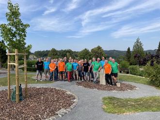 Nach einer etwa einjährigen Bauzeit ist auf einem bisher ungenutzten Teil des Friedhofs in Üdersdorf ein „Ruhepark“ entstanden. Auf einer Fläche von ca. 950 m² wurden Rasenflächen, Wege, Natursteinmauern und 13 Rondelle angelegt, in deren Mitte Parkbäume gepflanzt wurden. Um diese Bäume wurden 180 Urnengrabstellen vorbereitet, die nach Belegung mit Eichenblättern aus Bronze gekennzeichnet werden. 40 ehrenamtliche „Bauarbeiter“ leisteten bei ihren Arbeitseinsätzen ca. 1.100 Arbeitsstunden; sie wurden nach Feierabend von 8 Frauen aus dem Ort mit einer kostenlosen Mahlzeit versorgt. Kalkulatorisch sind Materialkosten von insgesamt ca. 18.500 € entstanden; nach Abzug von gespendetem und in der Gemeinde bereits vorhandenem Baumaterial wie Natursteinpflaster, Kalk-Quadersteinen, Mutterboden, Schotter etc. verblieben tatsächliche Kosten von rund 12.000 €. Dank eines Zuschusses von „Westenergie vor Ort“ in Höhe von 2.000 € und 3.275 € Spenden Üdersdorfer Bürger und Vereine verbleiben für den Haushalt der Ortsgemeinde noch etwa 6.725 € Restkosten. Der Ruhepark erfreut sich nicht nur einer großen Resonanz bei den Bürgern aus Üdersdorf, sondern auch aus anderen Orten. Ich danke allen Helferinnen, Helfern und Spendern für die tolle Unterstützung. Durch eure Hilfe ist der Ruhepark auf dem Friedhof zu einem gelungenen Werk geworden.