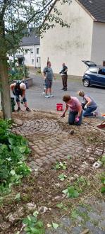 So wurde am gesamten Kirchvorplatz der Bewuchs entfernt, an der Brubbel und im Brubbelumfeld sauber gemacht, an verschiedenen Beeten Hand angelegt, am Spielplatz überstehende Hecken zurückgeschnitten und vieles mehr.