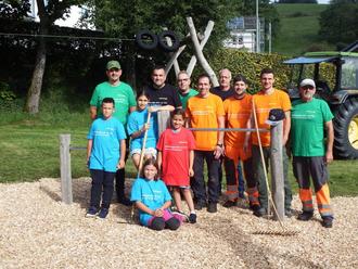 Aktion "Westenergie vor Ort" Erneuerung Fallschutzhackschnitzel auf dem Spielplatz Deudesfeld