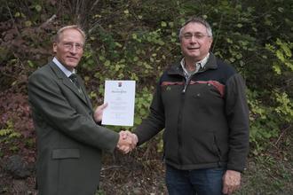 Bei seiner Verabschiedung im Kreise aktiver und ehemaliger Mitarbeiterinnen und Mitarbeiter des Forstamtes Daun dankte Forstamtsleiter Horst Womelsdorf Herrn Herzog für seinen beispielhaften Einsatz und würdigte u. a. sein waldbauliches und naturschutzfachliches Engagement im Revier, seine soziale Kompetenz, sein profundes Fachwissen und nicht zuletzt die vertrauensvolle Zusammenarbeit, die er mit dem Forstamt und mit „seinen Kommunen“ pflegte. Ein besonderes Dankeschön richtete der Forstamtsleiter an die Ehefrau Carola, die ihrem Mann bei seiner Arbeit stets den Rücken gestärkt und ihn ermutigt hat, wenn der Dienst auch einmal Ärger oder Enttäuschungen brachte. Horst Womelsdorf überreichte Gerhard Herzog die Dankurkunde des Leiters der Zentralstelle der Forstverwaltung für seine in langjähriger treuer Pflichterfüllung geleisteten Dienste und verband damit die besten Wünsche für den neuen Lebensabschnitt.