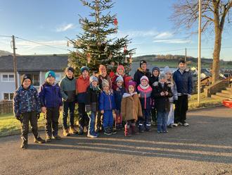 Viele tolle Ideen und selbst gebastelter Weihnachtsbaumschmuck wurden mitgebracht und von den Männern der Freiwilligen Feuerwehr bis in die höchsten Äste befestigt.