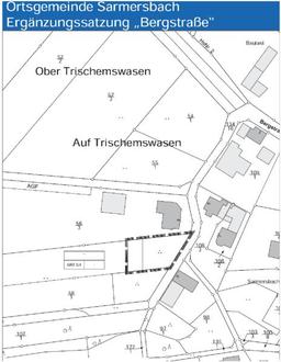 Der Ortsgemeinderat der Ortsgemeinde Sarmersbach hat die Aufstellung einer Ergänzungssatzung für den Bereich „Bergstraße“ beschlossen. Ziel dieses Satzungsverfahrens ist die Einbeziehung einer Außenbereichsfläche in den im Zusammenhang bebauten Ortsteil.