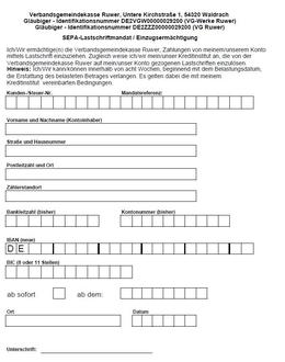 Verbandsgemeindekasse Ruwer, Untere Kirchstraße 1, 54320 Waldrach (Tel. 06500/918104 FAX /918100)