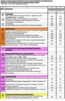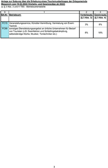 Die Anlage zur Tourismusbeitragssatzung – Betriebsartentabelle zu § 3 Abs. 3 und 4 TBS – der Ortsgemeinde Mesenich in der aktuellen Fassung wird wie in der beigefügten Anlage neu gefasst. Die vorläufigen Vorteils- und Gewinnsätze für das Erhebungsjahr 2022 werden gemäß § 3a Abs. 3 und 4 TBS endgültig festgesetzt.