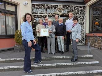 Die Leiterin der Tourist-Information Treis-Karden, Dorothee Brachtendorf, Ortsbürgermeister Hans-Josef Bleser sowie die Gastgeber Familie Bell bedankten sich bei den Gästen für die langjährige Treue zu ihrem Haus und zum Ferienort und überreichten Urkunden, einen Gutschein und regionale Geschenke aus Treis-Karden.