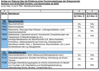 Die Anlage zur Tourismusbeitragssatzung – Betriebsartentabelle zu § 3 Abs. 3 und 4 TBS – der Ortsgemeinde Senheim in der aktuellen Fassung wird wie in der beigefügten Anlage neu gefasst.