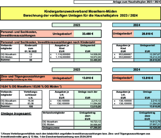 | Die vorläufige Umlage beträgt | für das Haushaltsjahr 2024 | 42.420 € |
