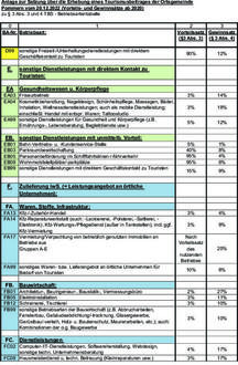 (3) Der Vorteilssatz bezeichnet für die einzelnen Arten der beitragspflichtigen Tätigkeit den auf dem Tourismus beruhenden Teil des Umsatzes. Der Vorteilssatz ist für die einzelnen Arten der beitragspflichtigen Tätigkeit in der Anlage zu dieser Satzung (Betriebsartentabelle) in Spalte 2 bestimmt.