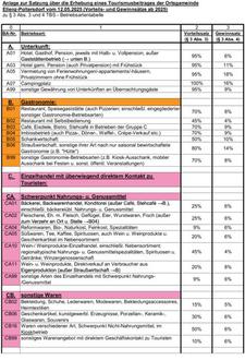 Die Anlage zur Tourismusbeitragssatzung – Betriebsartentabelle zu § 3 Abs. 3 und 4 TBS – der Ortsgemeinde Ellenz-Poltersdorf in der aktuellen Fassung wird wie in der beigefügten Anlage neu gefasst.