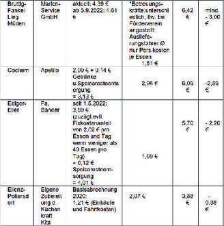 Bei den umliegenden Verwaltungen im Kreis Cochem-Zell werden zz. folgende Elternbeiträge für Mittagessen verlangt:
