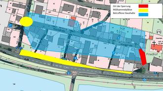 Aufgrund einer Gerüststellung ist die Kirchstraße in Nehren ab sofort bis voraussichtlich zum 07.09.2024 nicht mehr in Gänze durchfahrbar, d.h. die Müllabfuhr kann den Bereich nicht mehr regulär abfahren. Die Müllbehälter müssen daher an den Abfuhrterminen an die in der beigefügten Skizze markierten Orte verbracht werden.