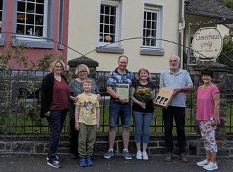 Die Leiterin der Tourist-Information Treis-Karden, Dorothee Brachtendorf, Ortsbürgermeister Josef Weckbecker sowie die Gastgeberin Ulrike Grolig bedankten sich bei den Gästen für die langjährige Treue zu ihrem Haus und zum Ferienort und überreichten eine Urkunde und regionale Geschenke von der Mosel. Die Gratulanten wünschten den Gästen alles Gute, vor allem Gesundheit, dass sie auch die nächsten Jahre ihre Urlaubstage hier in Moselkern verbringen können.