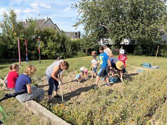 Am Dienstag, den 19. August, war im Dorfgarten richtig viel los. Gemeinsam mit elf Kindern und einigen Erwachsenen wurden die Kartoffeln geerntet, und die Ernte war sehr gut!