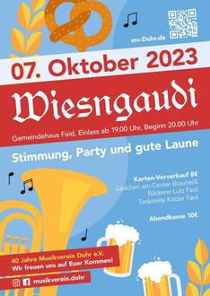 Der Musikverein Dohr e.V. feiert in diesem Jahr sein 40-jähriges Jubiläum und veranstaltet aus diesem Anlass eine „Wiesngaudi“ am 7. Oktober ab 20 Uhr im Gemeindehaus in Faid. Zu dem 40-jährigen Jubiläum gratuliere ich namens der Ortsgemeinde Dohr recht herzlich und hoffe, dass der Musikverein uns noch viele unbeschwerte Stunden mit seinen Auftritten beschert.