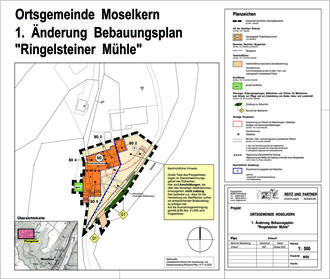 Der Gemeinderat von Moselkern hat in seiner Sitzung am 22.12.2022 die 1. Änderung des Bebauungsplanes „Ringelsteiner Mühle“ beschlossen. Dieser Beschluss wird hiermit gemäß § 2 Abs. 1 Satz 2 des Baugesetzbuches (BauGB) öffentlich bekannt gemacht. Ziel der Planung ist die Anpassung und Erweiterung des Baufensters und damit verbunden auch die geringfügige Erweiterung des Plangebietes. Da die Grundzüge der Planung nicht berührt sind, wird das vereinfachte Verfahren nach § 13 BauGB durchgeführt. Der Änderungsbereich ergibt sich aus dem Lageplan. Der Entwurf der 1. vereinfachten Änderung des Bebauungsplanes „Ringelsteiner Mühle“ liegt gemäß §§ 13 i.V.m. 3 Abs. 2 BauGB in der Zeit vom 13.11.2023 bis zum 13.12.2023, bei der Verbandsgemeindeverwaltung Cochem, Zimmer 3.23, Ravenéstraße 61, 56812 Cochem, öffentlich aus. Die öffentliche Einsichtnahme kann auch über das Internet unter www.vgcochem.de (Aktuelles; Landesplanung; Raumordnung; Bauleitplanung) erfolgen sowie während der Dienststunden (Montag bis Freitag von 8.00 bis 12.00 und von Montag bis Mittwoch von 14.00 bis 16.00 Uhr, am Dienstleistungsabend Donnerstag bis 18.00 Uhr) nach vorheriger telefonischer Kontaktaufnahme mit Frau Mohr, 02671 608-228. Betroffenen Bürgern werden die Ziele und Zwecke der Planung dargelegt. Hierbei wird jedem Gelegenheit zur Stellungnahme gegeben. Eine Umweltprüfung nach § 2 Abs. 4 BauGB wird nicht durchgeführt. Es wird darauf hingewiesen, dass nicht fristgerecht abgegebene Stellungnahmen bei der Beschlussfassung über die Satzung gemäß § 4 a Abs. 6 BauGB unberücksichtigt bleiben können, sofern die Gemeinde deren Inhalt nicht kannte und nicht hätte kennen müssen und deren Inhalt für die Rechtmäßigkeit der Satzung nicht von Bedeutung sind.