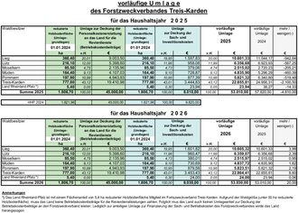 Umlagegrundlagen beider Umlagen sind die reduzierten Holzbodenflächen mit Stand vom 01.01. des Haushaltsjahres.
