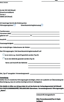 Bitte füllen Sie diesen aus, unterschreiben ihn, fügen eine Kopie Ihres Ausweises bei und schicken den Antrag an: