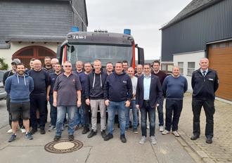 Vor einigen Tagen stand die Neuwahl der Wehrführung der im letzten Jahr durch das neue Mittlere Löschfahrzeug (MLF) verstärkten Freiwilligen Feuerwehr Grenderich an. Der bisherige stellvertretende Wehrführer Udo Hoff ist nach über 34-jähriger Mitarbeit in der Wehrführung nicht mehr zur Wahl angetreten. Er wurde von Bürgermeister Jürgen Hoffmann nach dieser beeindruckenden Zeit im Dienst der Allgemeinheit mit einem Präsent aus der Wehrführung verabschiedet.