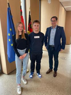 Am 28.05.2024 fand in der Verbandsgemeindeverwaltung Zell (Mosel) die Neuwahl der Jugend- und Auszubildendenvertretung statt. Max Fuhrmann wurde mehrheitlich zum Vorsitzenden und Celina Therstappen zu seiner Stellvertretung gewählt. Beide absolvieren derzeit ihre Ausbildung zur / zum Verwaltungsfachangestellten in der Verbandsgemeindeverwaltung. „Wir wünschen den beiden viel Erfolg und Spaß bei der Wahrnehmung ihrer künftigen Aufgaben. Gleichzeitig danke ich der bisherigen Vorsitzenden Hanna Bauer und ihrer Stellvertretung Luis Rohr für ihren Einsatz!“ so Bürgermeister Jürgen Hoffmann.