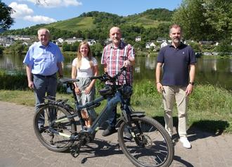 V.l.n.r.: Bürgermeister Karl Heinz Simon, Katja Nalbach (Personalrat), Frank Kaufmann (VGV Zell), Andreas Sturm (Projekt Job-Fahrrad VG Zell)