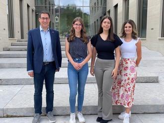 (v. l. n. r.: Bürgermeister Jürgen Hoffmann, Lena Hammes, Marie Diederichs, Ausbildungspatin Laura Eigelshoven, Foto: K. Morsch)