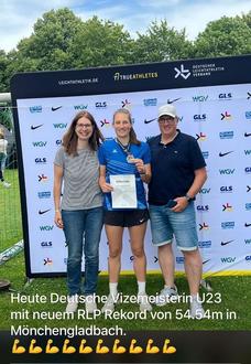 Hannah Kaiser ist bei den deutschen Meisterschaften Vize-Meisterin mit der neuen Rekordweite von 54,54 m geworden.