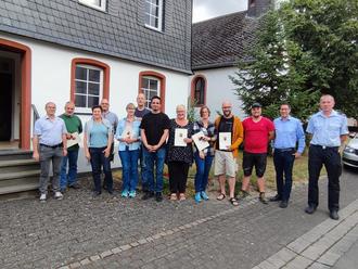Für 15-jährigen aktiven Dienst in der Feuerwehr konnten Frau Kathrin Hoffmann, Herr Lars Hoffmann, Frau Waltrudis Schimpgen, Herr Albert Schimpgen und Frau Monika Sprenger und für 35 Jahre Herr Andreas Kölzer geehrt werden.