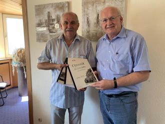 Dr. Buschbaum überreichte jetzt Bürgermeister Karl Heinz Simon von der Verbandsgemeinde Zell eine Ausfertigung der drei Chronik-Bände, da ein Teil der Gemeinden der früheren Verwaltung Senheim seit der Kommunalreform 1970 zur Verbandsgemeinde Zell gehört.