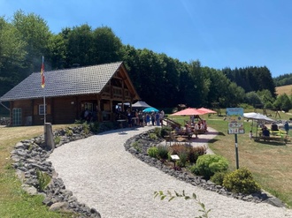 es Essen an der Blockhütte: