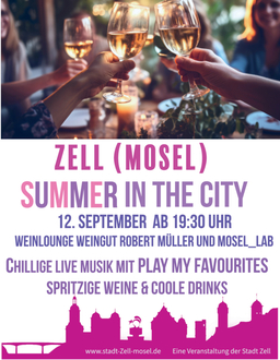 Am 12.09.2024 findet das letzte Event der Reihe „Summer in the City“ in diesem Jahr statt. An diesem Abend sind wir an der Weinlounge beim Weingut Robert Müller zu Gast. Musikalisch ist die Band Play my favourites“ am Start.