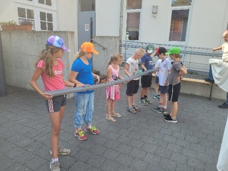 Ab Montag, 08.08. fanden drei- bis viermal die Woche einzelne Angebote statt - zumindest war das der ursprüngliche Plan. Nachdem uns im letzten Jahr der Regen negativ in die Karten spielte, war es in diesem Jahr die Hitze, die uns dazu zwang, verschiedene Angebote umzuplanen oder gar abzusagen. Das jährliche Inlinerangebot wurde kurzerhand in die Turnhalle der IGS Zell verschoben, das Kanu und SUP (Stand Up Paddeling)-Angebot musste aufgrund der Blaualgen abgesagt werden und und und. Allerdings wurden die Angebote, die stattfinden konnten durchgeführt. Der Ruderverein Zell (Mosel) (Norbert Feiden), der Tennisclub Zell (Mosel) (Dirk Muscheid) und Reiner Göderz boten auch im Jahr 2022 tolle Angebote für die Kinder und Jugendlichen der Verbandsgemeinde Zell (Mosel) an. Auch Armin Surkus-Anzenhofer war wieder mit von der Partie und bot in Kooperation mit dem Jugend- und Seniorenbüro der Verbandsgemeinde Zell (Mosel) einen Tag in der Römerzeit an. „Quo vadis“ war das Motto des Tages und gemeinsam begab sich die Gruppe auf die Spuren der Römer. Sie bauten Aquädukte, löschten einen Brand in Rom, um Kaiserin Helena zu retten und lernten viele Spiele kennen, die man spielte, als es noch keine Computer o.Ä. gab. Ebenfalls beteiligte sich der Globus Zell-Barl an dem Ferienprogramm und bot an zwei Tagen einen Einblick hinter die Kulissen des Marktes.